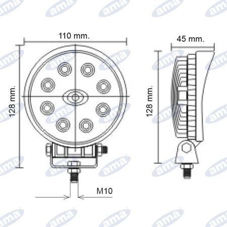 Faro da lavoro a led tondo con corpo in alluminio, lente in PC, staffa di fissaggio in acciaio inossidabile. Flusso luminoso ad ampio raggio (60ยฐ). 30000 ore di vita. Inversione di polaritร protetto.